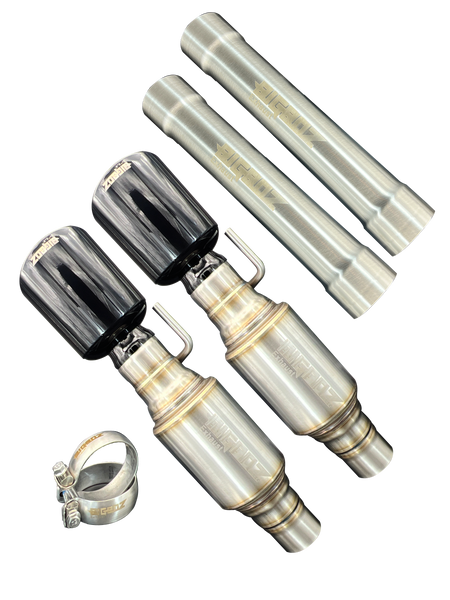 • Easy Installation: Designed as a direct bolt-on, they are compatible with factory or aftermarket mid-pipes, making installation straightforward.